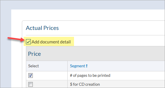 - $ for compilation index generation: Managed based on doc codes identified as compilation TOC's. Quantity is automatically calculated, but can be adjusted from the Actual Prices grid.
