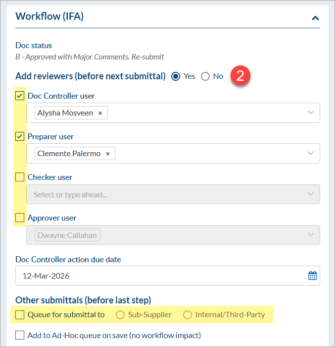 For example, if the doc controller role completed their action(s) on September 1st, the action due date for the next role (i.e., the engineer) would be set to 5 days later (September 6th).