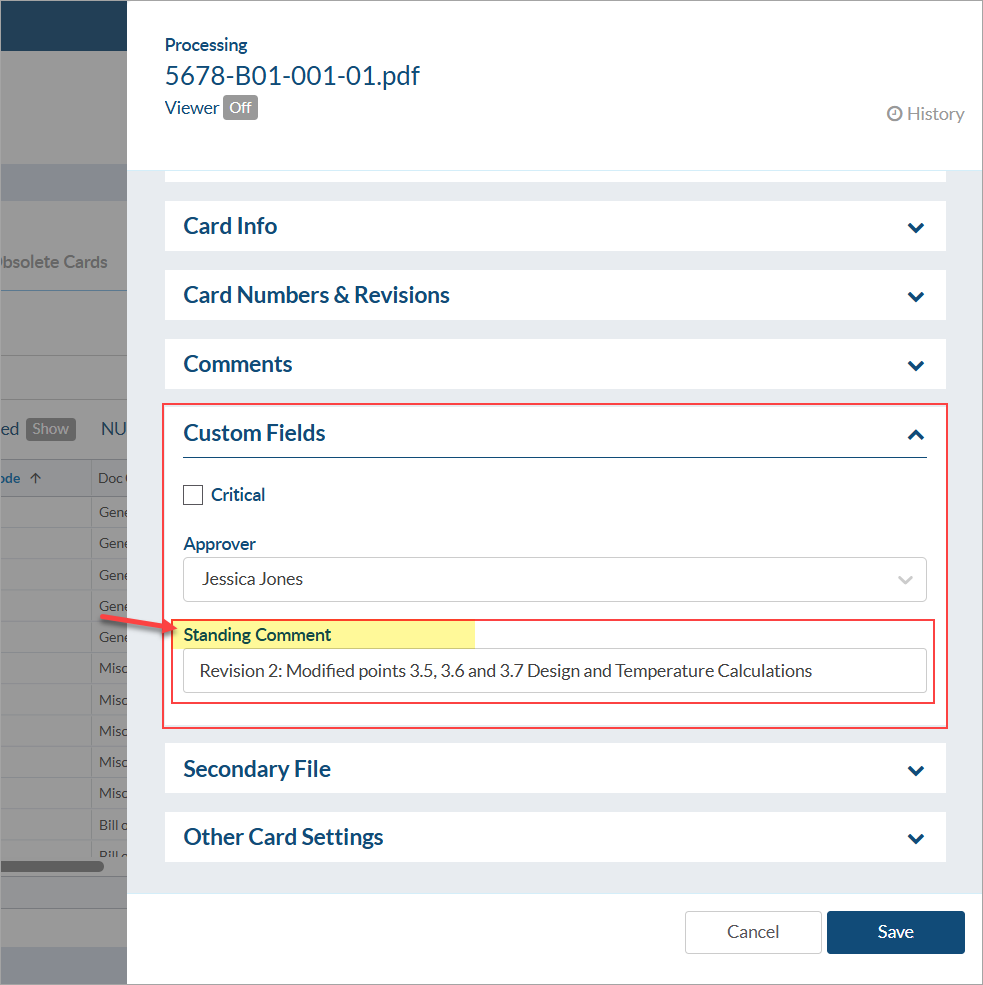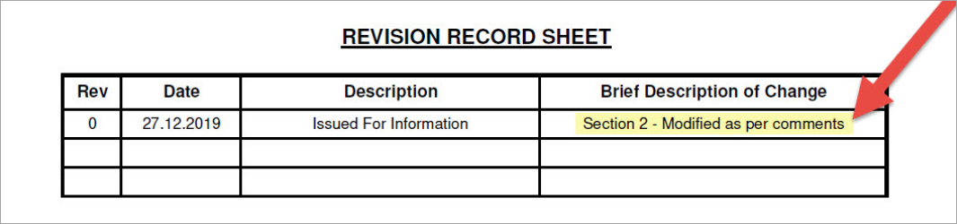 If you wish to add additional information (i.e. explain changes made to the document), users can insert their comments into these field and they will be added into the cover page template.