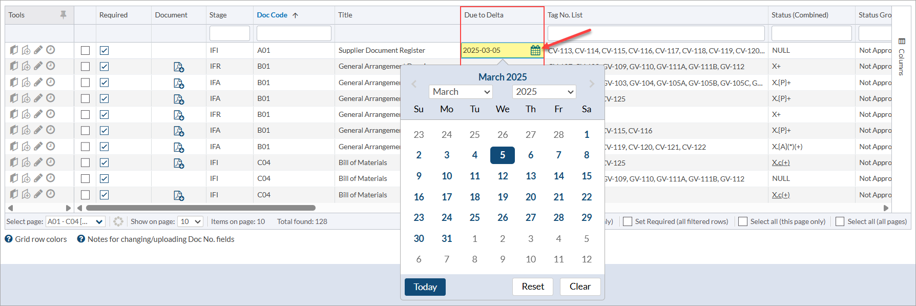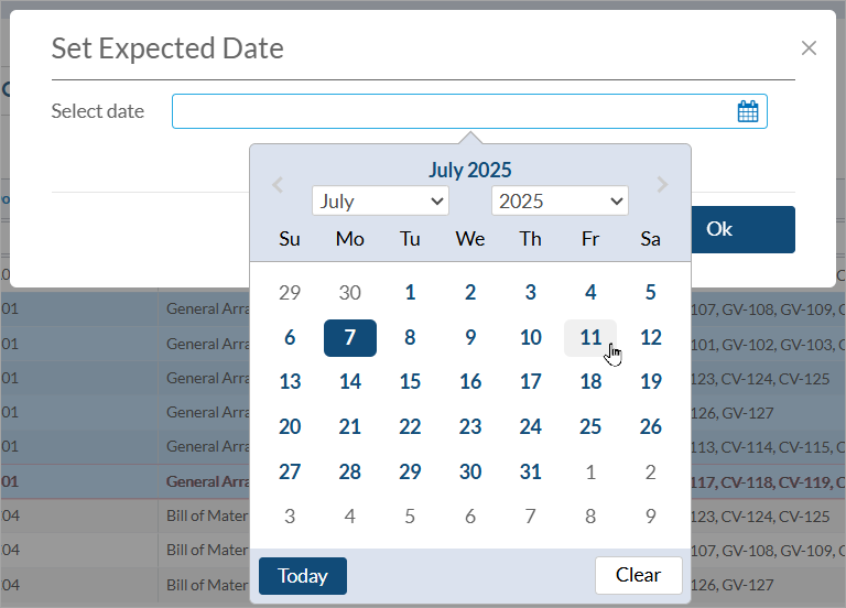 - Expected dates are the dates when the documents are expected back from submittal target (customer, internal or sub-supplier).