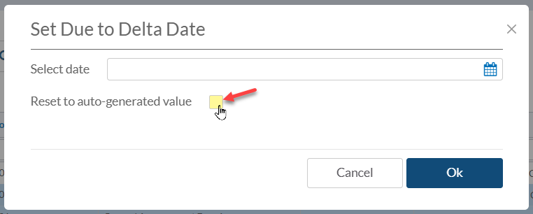 Cards with manually adjusted due dates can be set back to auto-generated values in bulk using the same method. Simply check the box to "Reset to auto-generated value".