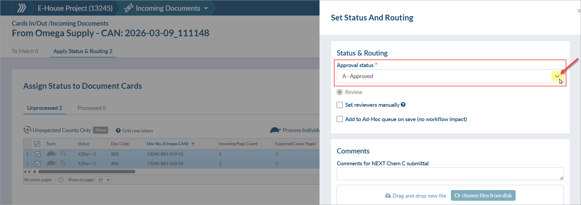 4. Upload files & assign approval status