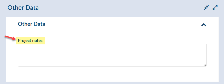 "Other data" name change: Consistent with it's typical use case, the "Other data" field on the project configuration page ("Main" tab) has been renamed to "Project notes." This adjustment also helps to differentiate between this field and custom project main fields (if applicable).