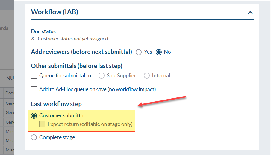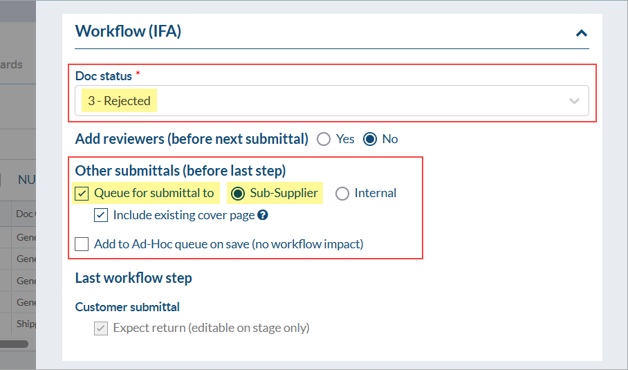 In this case, the IFC stage is set to expect a returned document. Once the drawing is submitted to the sub-supplier, the card will remain in the current stage until the document is returned.