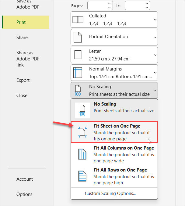 As an alternative, choosing the "Fit Sheet on One Page" scaling option will ensure that all content (included in that sheet) is generated on one page. Keep in mind that the output may shrink as a result.